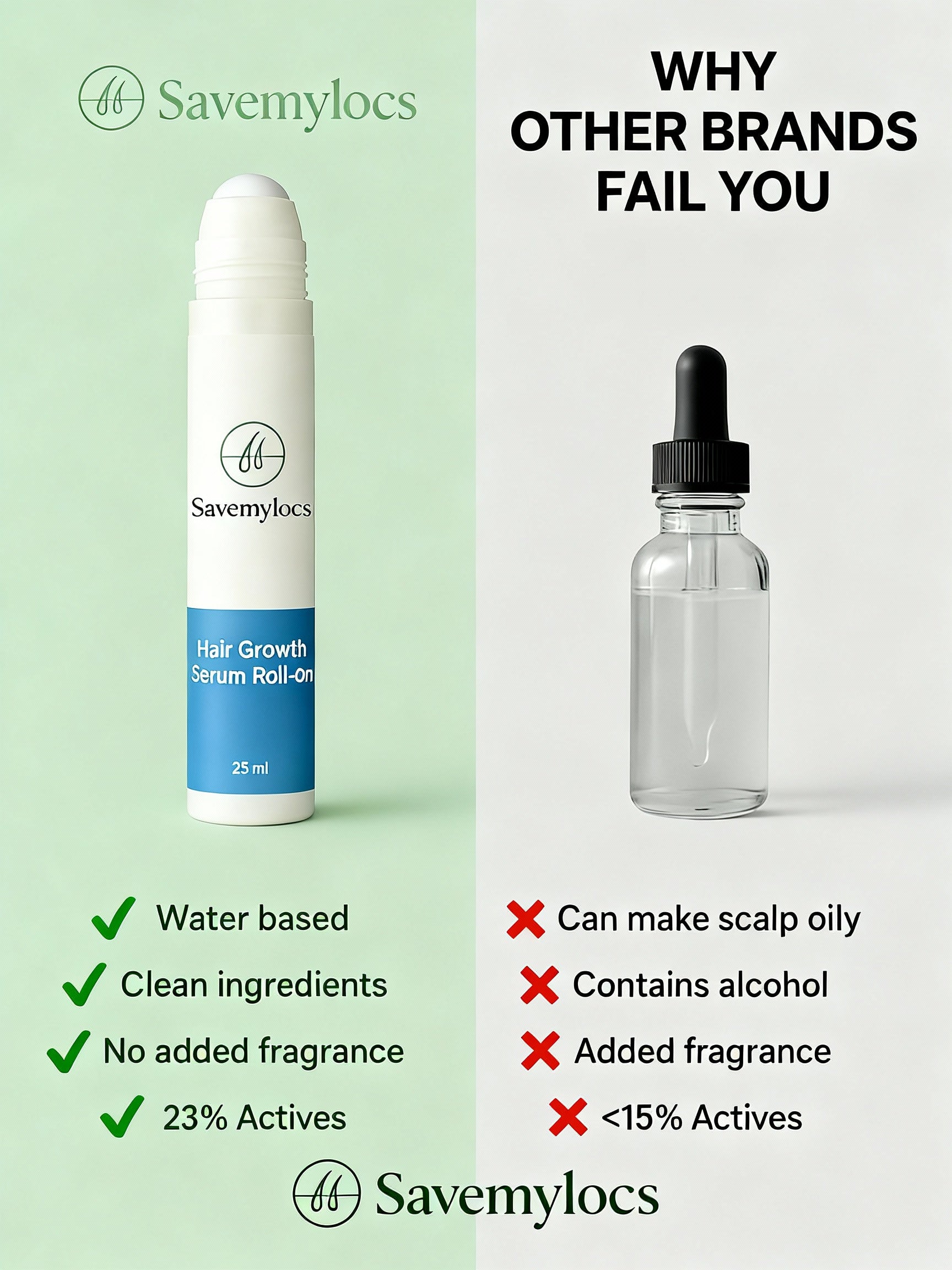 In the past 3 months, I was starting to notice thinning patches in the corners of my temple. Since then I've been doing some digging around, I didn't want to get into anything too harsh (Minoxidil, Light Therapy, etc). So I decided to stick it out with a safe, natural, everyday alternative. SavemyLocs did in fact SAVEME. I'll be topping up monthly that's for sure